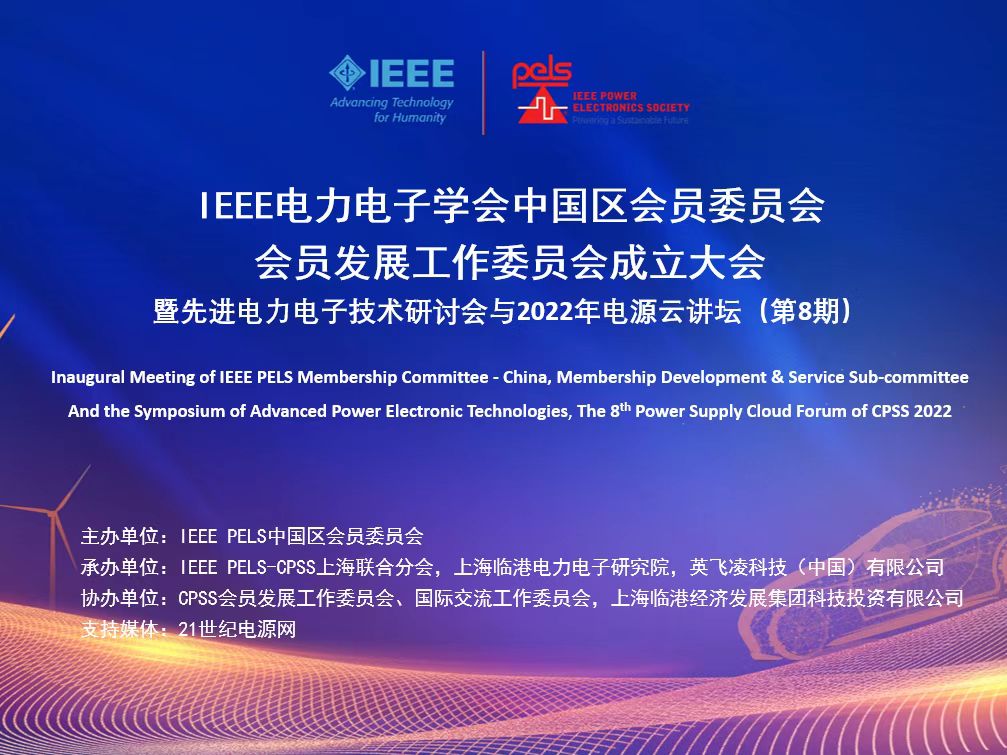 2022年9月18日,由上海臨港電力電子研究院承辦的IEEE電力電子學(xué)會(huì)中國區(qū)會(huì)員委員會(huì),會(huì)員發(fā)展工作委員會(huì)成立大會(huì),暨先進(jìn)電力電子技術(shù)研討會(huì)與2022年電源云講壇(第8期)在上海臨港成功舉辦。