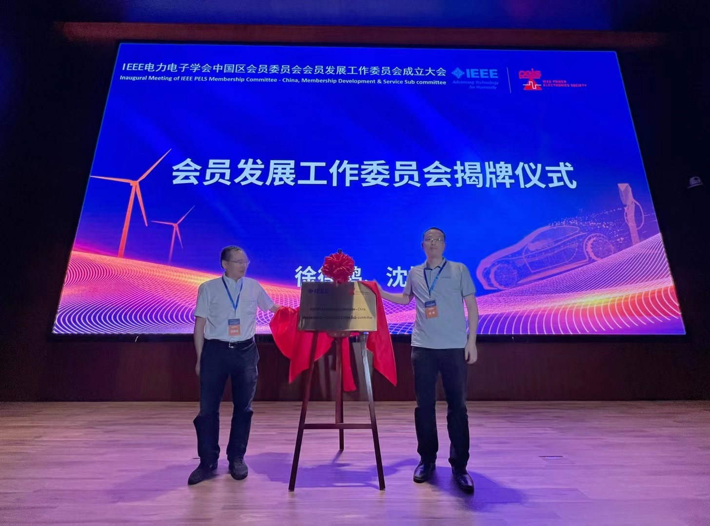 會(huì)議當(dāng)天,由孫建教授的學(xué)術(shù)報(bào)告作為開場(chǎng),分享了電力電子和基于轉(zhuǎn)換器的電力系統(tǒng),徐德鴻教授和英飛凌高級(jí)技術(shù)總監(jiān)陳立烽先生分別就寬禁帶器件大功率電力電子系統(tǒng)最新進(jìn)展以及功率半導(dǎo)體和電力電子協(xié)同共進(jìn)相關(guān)課題做了分享,孫凱教授就中國區(qū)的工作成果做了報(bào)告。會(huì)上,徐德鴻教授與沈捷院長(zhǎng)共同為IEEE PELS中國區(qū)會(huì)員發(fā)展工作委員會(huì)進(jìn)行揭牌,研究院作為工委會(huì)的掛靠單位,將全力推進(jìn)會(huì)員發(fā)展工作,建立起中國區(qū)會(huì)員之間的聯(lián)系橋梁,持續(xù)開展會(huì)員服務(wù)與學(xué)術(shù)交流工作。