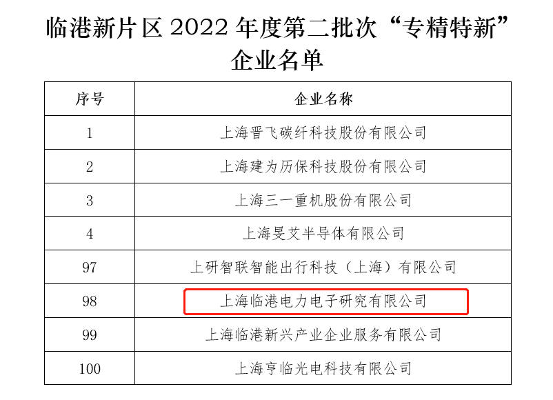 2月20日,臨港新片區(qū)管委會公示了2022年度臨港新片區(qū)第二批次“專精特新”企業(yè)名單,上海臨港電力電子研究院榜上有名。