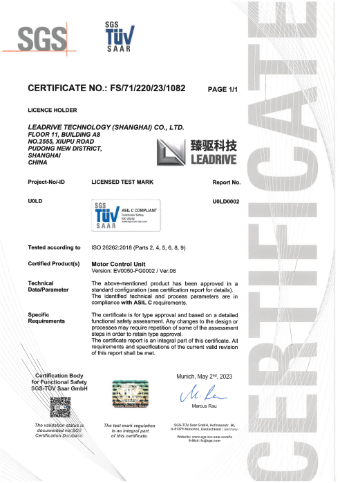 近日,國(guó)際權(quán)威第三方審核認(rèn)證機(jī)構(gòu)SGS為臻驅(qū)科技(上海)有限公司(以下簡(jiǎn)稱“臻驅(qū)科技”)頒發(fā)ISO 26262:2018 ASIL C汽車功能安全產(chǎn)品認(rèn)證證書,該證書是臻驅(qū)科技獲得的首個(gè)功能安全產(chǎn)品認(rèn)證證書,也是繼2021年7月獲得“ISO 26262:2018 ASIL D汽車功能安全流程認(rèn)證證書”后,在汽車功能安全產(chǎn)品開發(fā)能力建設(shè)的又一重大里程碑。