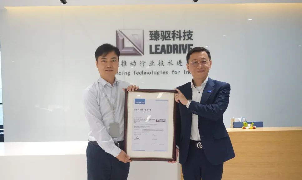 現(xiàn)場,臻驅科技副總經(jīng)理沈皓舜,臻驅科技首席工程師余浩,基礎軟件部研發(fā)經(jīng)理孫利干,TÜV NORD大中華區(qū)副總裁宋海寧及TÜV NORD中國區(qū)銷售總監(jiān)謝堯等雙方代表出席授證儀式。